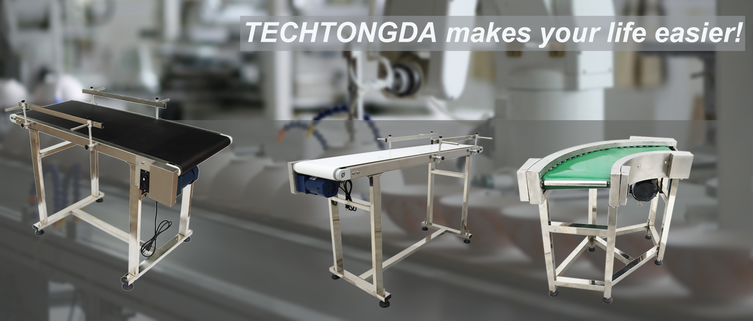 【Application】This flat conveyor is mainly used to transfer the bottles, electronic parts, plastic bag, paper box for automated production for food, beverage, cosmetics, printing industries.