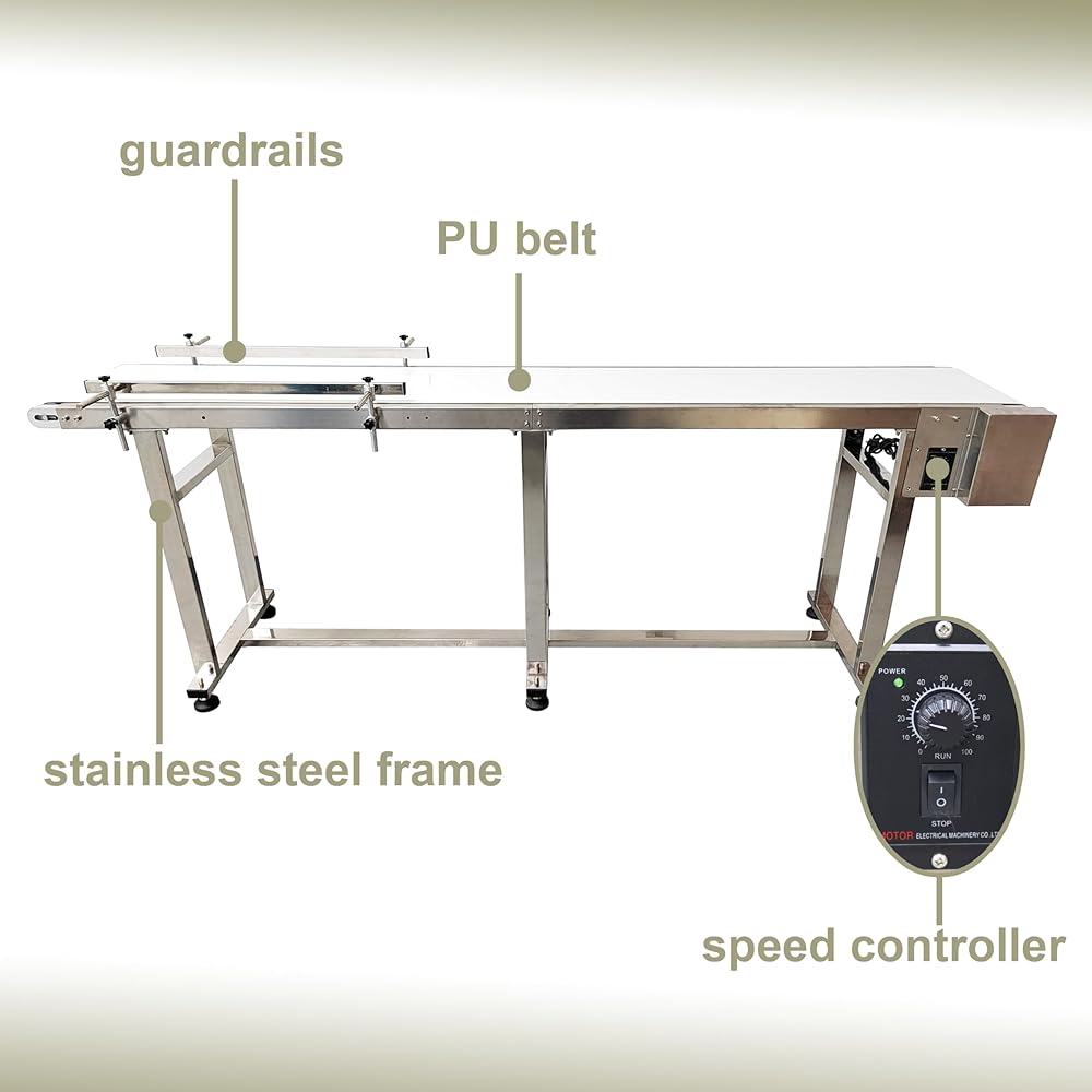 【Speed Adjustable】With powerful motor and transmitting speed of belt is adjustable. The adjustable range is 16-60ft/min to ensure that it can work perfectly with your automatic machine.