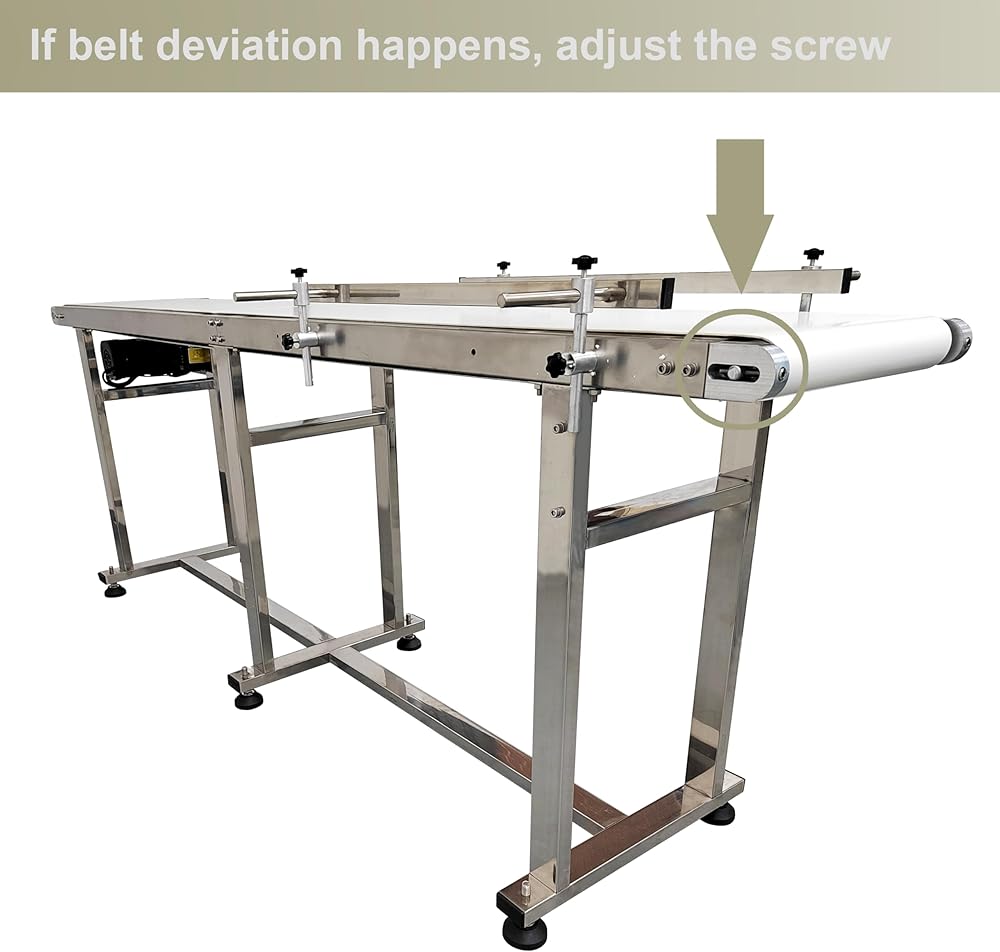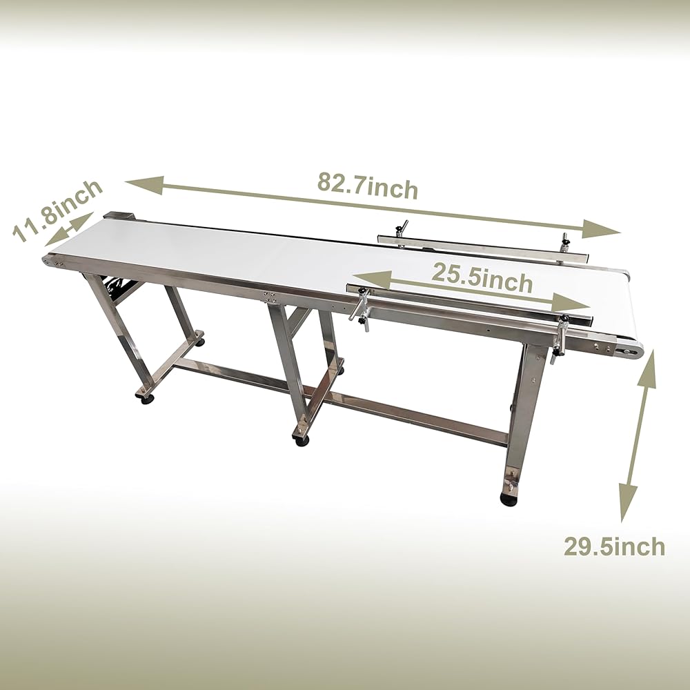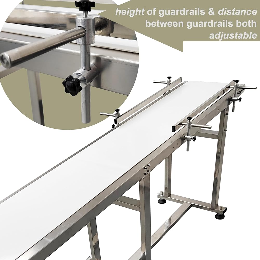 【Stable Stainless Steel Conveyor】Frames are made of stainless steel and connected by screws for stability. It is combined with 2 parts which are easy to be assembled. It also has 4 rubber pedestals at the bottom.