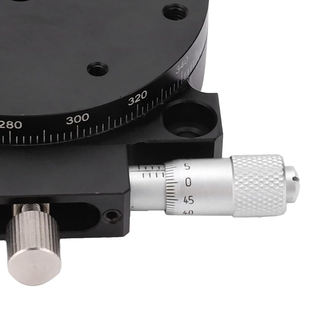 Micrometer Drive for Ultra-Fine Adjustment Equipped with a micrometer drive system, this stage enables coarse 360-degree rotation as well as fine adjustments within ±5 degrees. The dual tuning capability allows users to approach the desired position quickly and then achieve exact alignment with minimal effort.