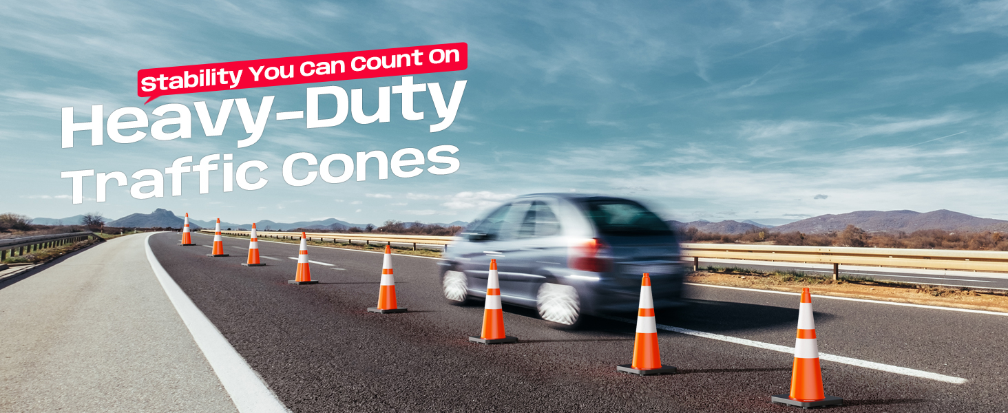 Suitable for Multiple Scenarios:This black base traffic safety cone is designed for versatile use in various settings, including roadway control, parking lots, construction sites, school zones, and event management. It can assist with vehicle guidance, temporary lane marking, hazard warnings, and crowd control, making it a practical option for both indoor and outdoor safety needs