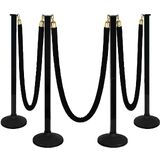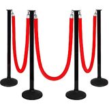 4 Pack Stanchion Post with Velvet Ropes (Weighted Base), Crowd Control Barriers, Red Carpet Runner Poles, Queue Poles for Party, Movie Theater, Plastic