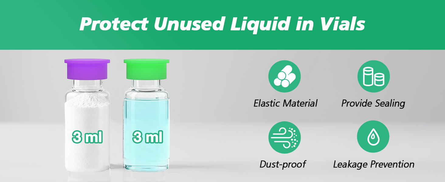 【Preserve Opened Vials】Specially shaped to fit securely on opened 1ml‑3ml vials, helping extend the life of peptides, GLP‑1 solutions, and insulin. The color‑coding simplifies identification in any peptide storage case or peptide holder, whether you're in the lab, clinic, or traveling with a peptide travel case TSA approved