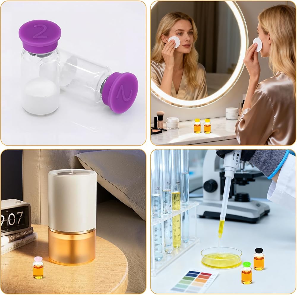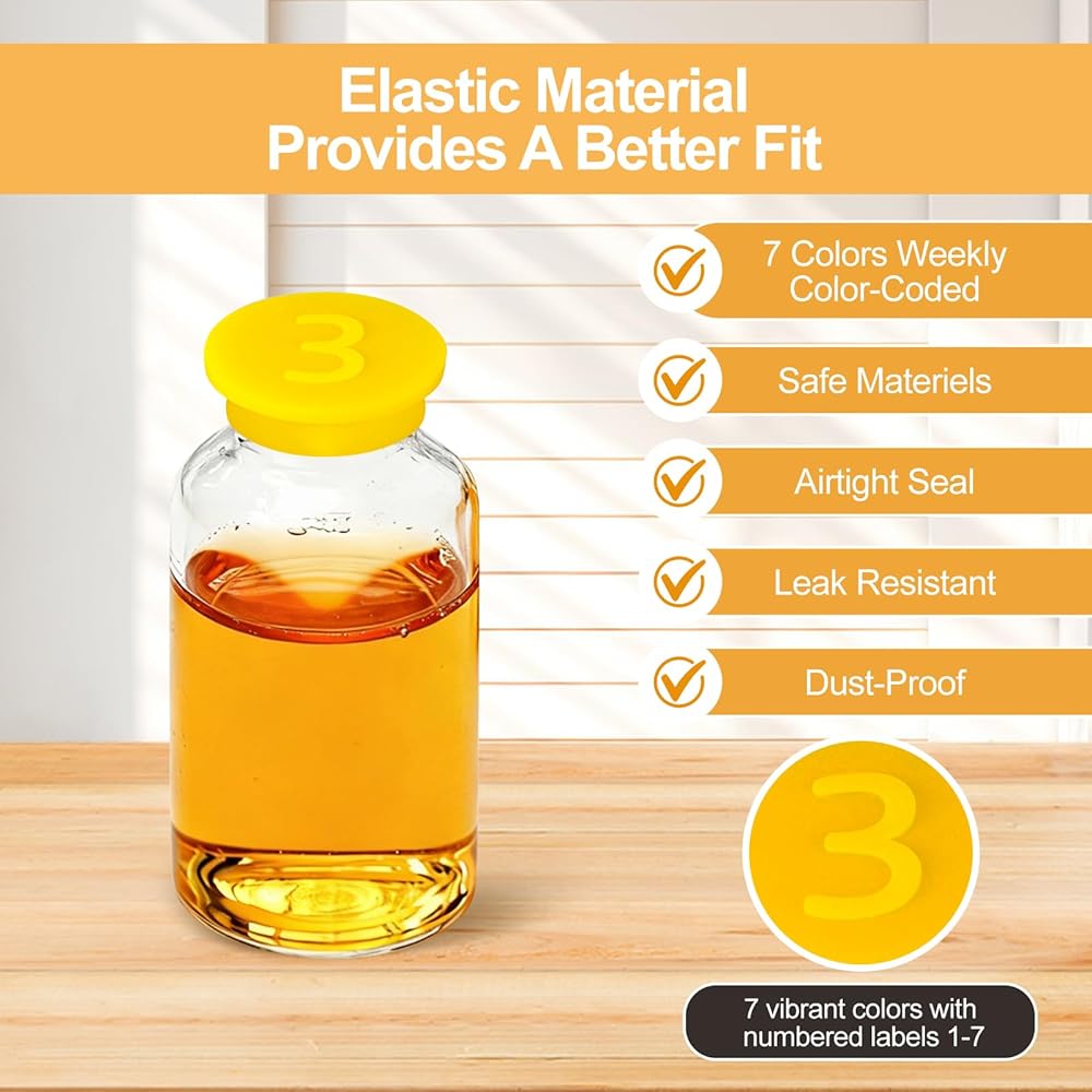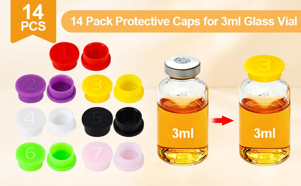 Color-Coded & Numbered for Easy Organization: Vial caps includes 14 vial caps in 7 vibrant colors (2 caps per color). Each 3ml vial caps is clearly numbered 1–7, allowing quick identification, classification, and efficient management of different vial contents.