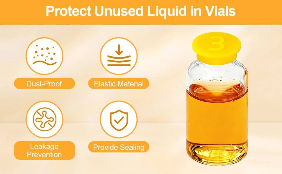 Reusable & Easy to Clean: 3ml vial caps made from high-quality, durable material for long-term use. Simply rinse with water after each use for fast and convenient cleaning.Reusable & Easy to Clean: 3ml vial caps made from high-quality, durable material for long-term use. Simply rinse with water after each use for fast and convenient cleaning.