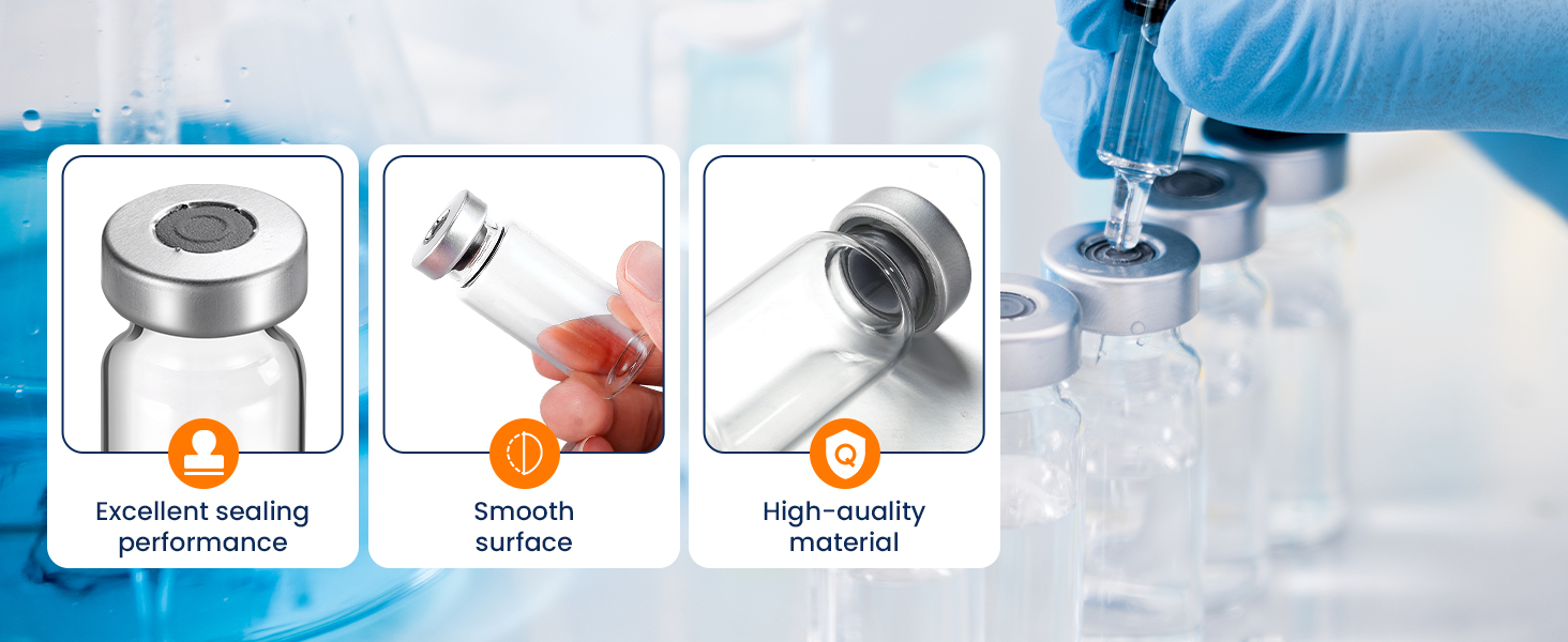 Fully Sealed Vials for Injection : You can use 12 individually packaged sterile vials with self-healing injection ports ,butyl inner stopper and aluminum sealed caps to maximize sample safety, making them an ideal choice for moving, replenishing, and storing sample solutions
