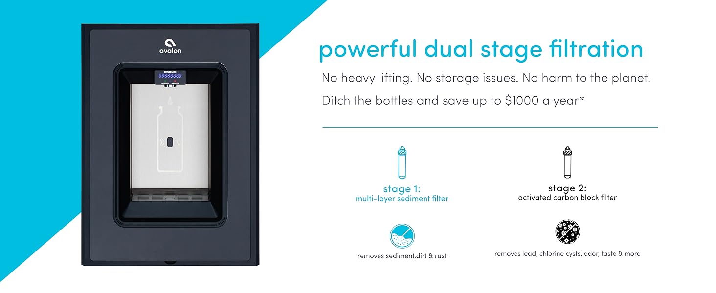 DIGITAL DISPLAY: The digital display features a bottles saved counter letting you know how you are helping the environment & has a replace filter indicator that lights up when the filter needs to be replaced. The unit can also connect to the Avalon app so you can keep tabs on the usage and filter life from wherever you are.