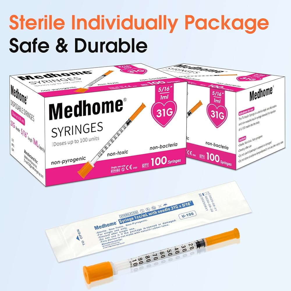1ml/cc x 31G x 5/16" (8mm) individually sealed packaging, 100 pack.