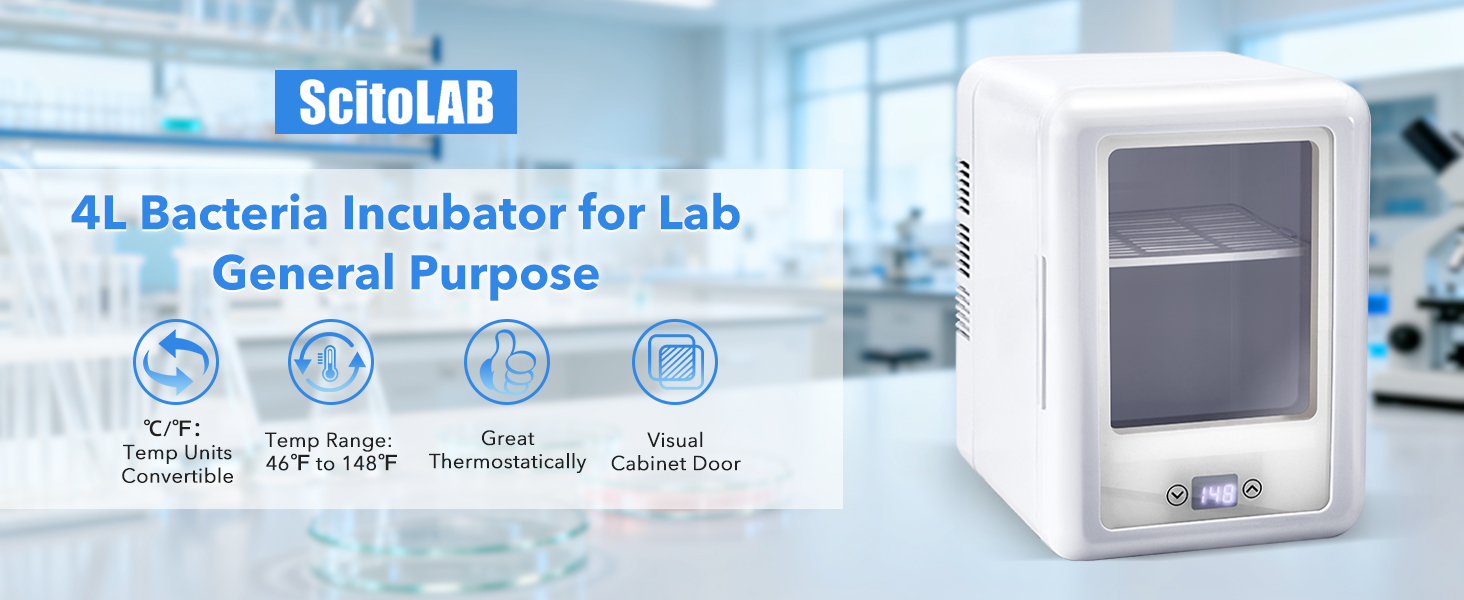 The incubator features industrial-grade ABS material for robust performance and easy to clean. Removable interior shelves accommodate diverse laboratory vessels including glass petri dishes, culture flasks, test tubes, etc