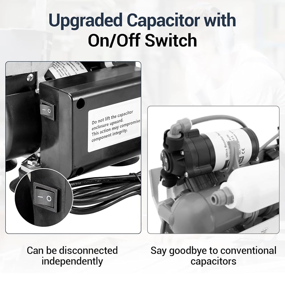 Oil Free & Maintenance Free: Upgraded capacitor with On/Off switch, say goodbye to messy wiring, safer and more efficient, also can be disconnected independently, no need to unplug frequently. It can operate without any lubrication, reducing maintenance issues and significantly increasing production