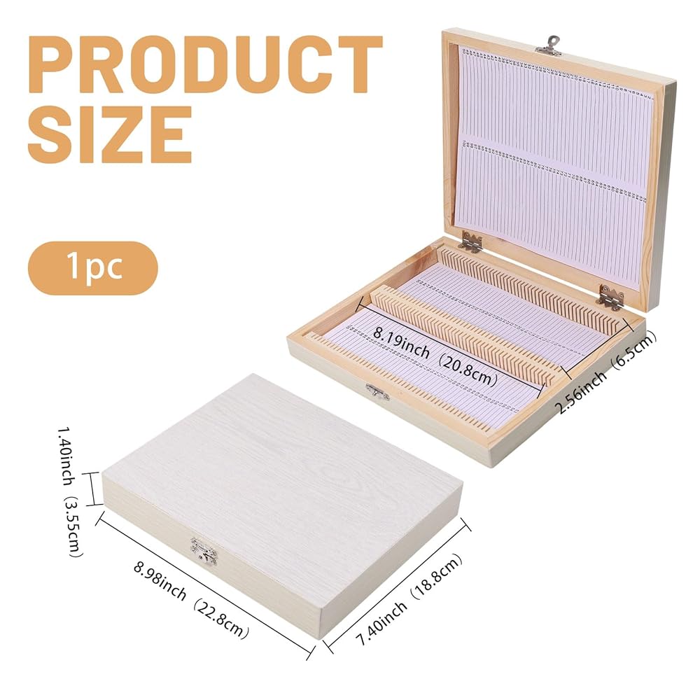 Package Include: Package Include: You will receive 1 pcs 100 place microscope slide holder, for placing prepared microscope slides, a sufficient quantity to meet your storage needs. The size is about 7.4 inch(18.8 cm) wide, 8.98 inch(22.8 cm) long, 1.4 inch(3.55 cm) thick, single inner diameter: 2.56x8.19 inch(6.5x20.8 cm)