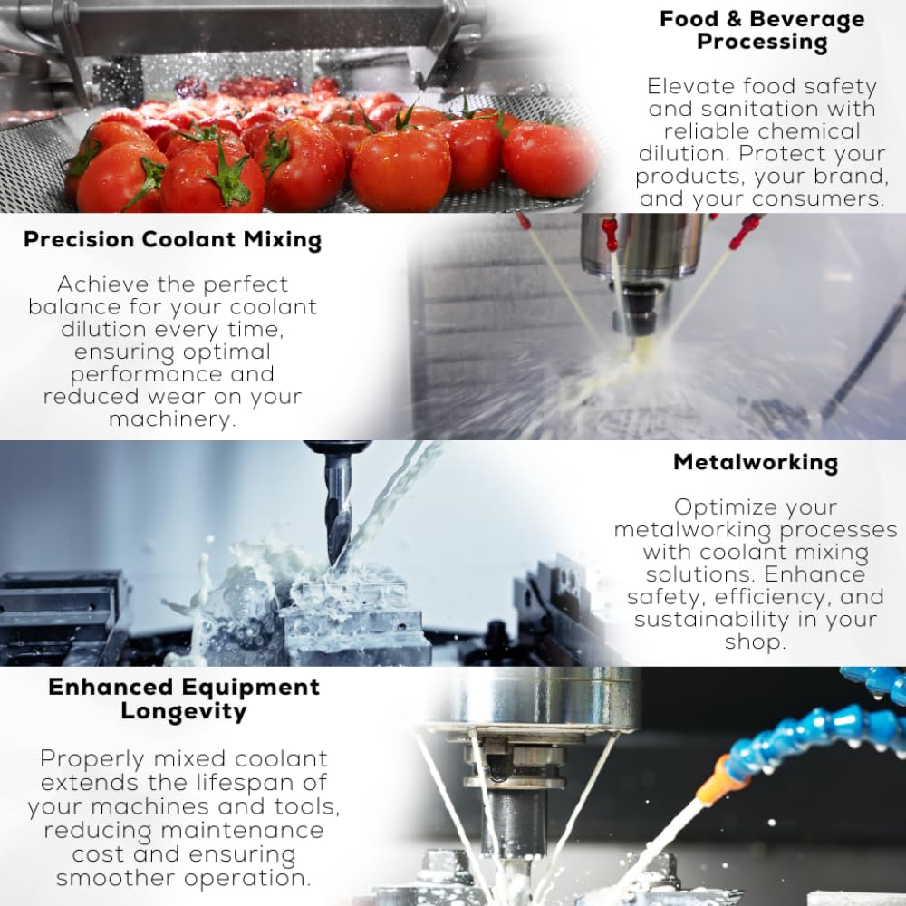 Flexible Dilution Control: Offers precise dosing between 1–10%, making it suitable for various coolants, soaps, degreasers, or other chemical mixtures used in operations.
