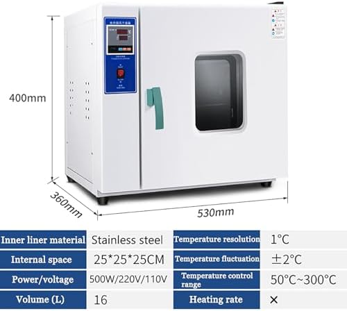 Introducing the Industrial-Lab Digital Convect Oven, designed for precise drying and heating across various applications, including laboratories, electronics, and agriculture. This versatile oven features advanced PID control, operating between 50-280°C, ensuring consistent temperature management and optimal airflow for uniform hot-air circulation. Enhance your productivity with its rapid heating capabilities while maintaining high-quality results. **Key Features:** 1. **User-Friendly PID Control:** Easily adjust settings with the microcomputer temperature controller, allowing for precise temperature regulation. 2. **Safety First:** Equipped with an over-temperature alarm and self-optimization function, ensuring your operations run smoothly and safely. 3. **Durable Construction:** High-quality stainless steel electric heating tubes provide long-lasting performance even at elevated temperatures. 4. **Convenient Design:** Two removable shelves make cleaning and replacement simple, enhancing user convenience. 5. **Clear Monitoring:** The large double-layer tempered glass observation window allows for easy monitoring of your processes without opening the oven. **Specifications:** - **Product Name:** Constant Temperature Drying Oven - **Coating Material:** Galvanized and Stainless Steel Liner - **Voltage:** 110V/220V - **Temperature Control Range:** 50°C - 280°C - **Temperature Fluctuation:** ±1°C - **Time Range:** 1-9999 Minutes - **PID Functionality:** The temperature in the 16L/43L drying oven can be adjusted upwards only during use. **Available Sizes:** - **16 Liters:** - Inner dimensions: 25*25*25 cm - Power: 500W - Overall size: 54*37*43 cm - Net weight: 15 kg - Shelf Position: 4 layers (5 cm apart) - **43 Liters:** - Inner dimensions: 35*35*35 cm - Power: 800W - Overall size: 63*46*47 cm - Net weight: 23 kg - Shelf Position: 4 layers (7 cm apart) **Packing List:** - 1 x Constant Temperature Drying Oven - 2 x Separators - 1 x Manual...