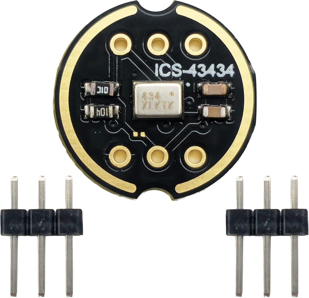 Upgrade your projects with this 1-PCS ICS-43434 MEMS digital microphone module, engineered for high-fidelity audio capture and low-power operation. Featuring a 24-bit I²S digital interface, these microphones compatible with ESP32, Raspberry Pi, without requiring external ADCs or codecs. With a wide frequency response of 60 Hz – 20 kHz, a high Signal-to-Noise Ratio (65 dBA in performance mode), and a 120 dB Acoustic Overload Point (AOP), the ICS-43434 delivers clearer, more accurate audio across a broader range than basic MEMS microphone modules. The omnidirectional pickup ensures consistent detection from any direction, making it ideal for voice recognition, ambient monitoring, and audio recording applications. The low-power “AlwaysOn” mode enables continuous voice capture in battery-powered systems such as IoT devices, wearables, and smart home products, offering efficiency without sacrificing performance. Why choose ICS-43434? Wider frequency range: 60 Hz – 20 kHz (captures more detail in higher frequencies). Higher clarity: up to 65 dBA Signal-to-Noise Ratio in performance mode. Greater durability in loud environments: 120 dB SPL Acoustic Overload Point. Flexible power modes: including ultra-low-power “AlwaysOn” for voice-triggered designs. Whether you are upgrading from entry-level MEMS microphones or designing advanced IoT devices, the ICS-43434 provides superior audio performance, wider bandwidth, and more flexible power options, making it an excellent choice for demanding applications.