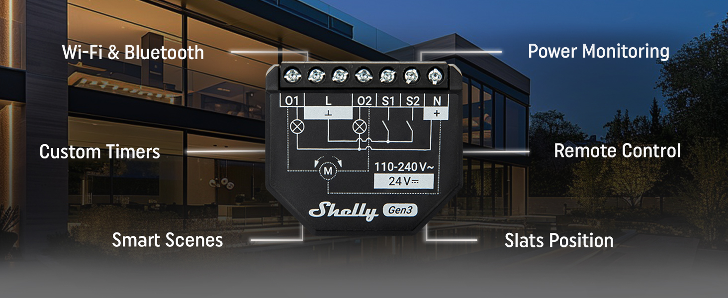 Shelly 2PM Gen3 | WiFi 2-Channel Smart Relay Switch with Power Metering | Home Automation | Roller Shutters, Blinds, Gates Control | Remote Control | Alexa & Google Home | iOS Android App