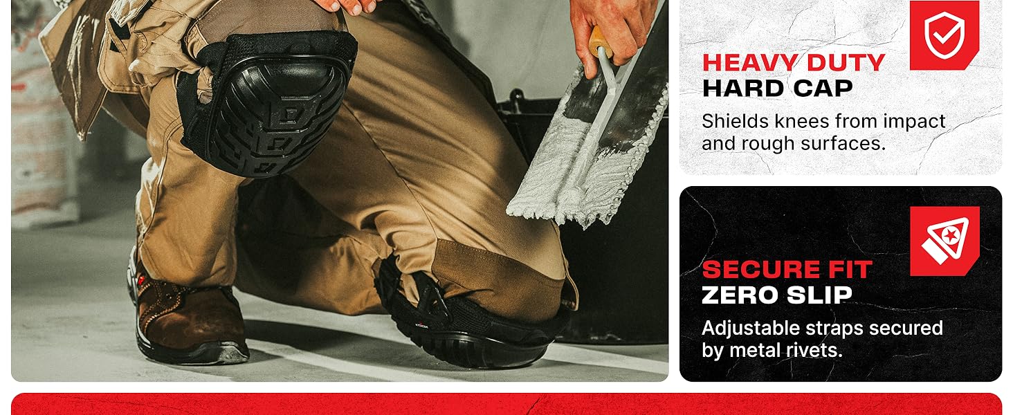 SECURE FIT — Enjoy a non-slip, perfect fit thanks to the reinforced elastic straps and military-grade rivets that will keep your work knee pads for men, or knee protector firmly in place during any gardening or construction tasks.
