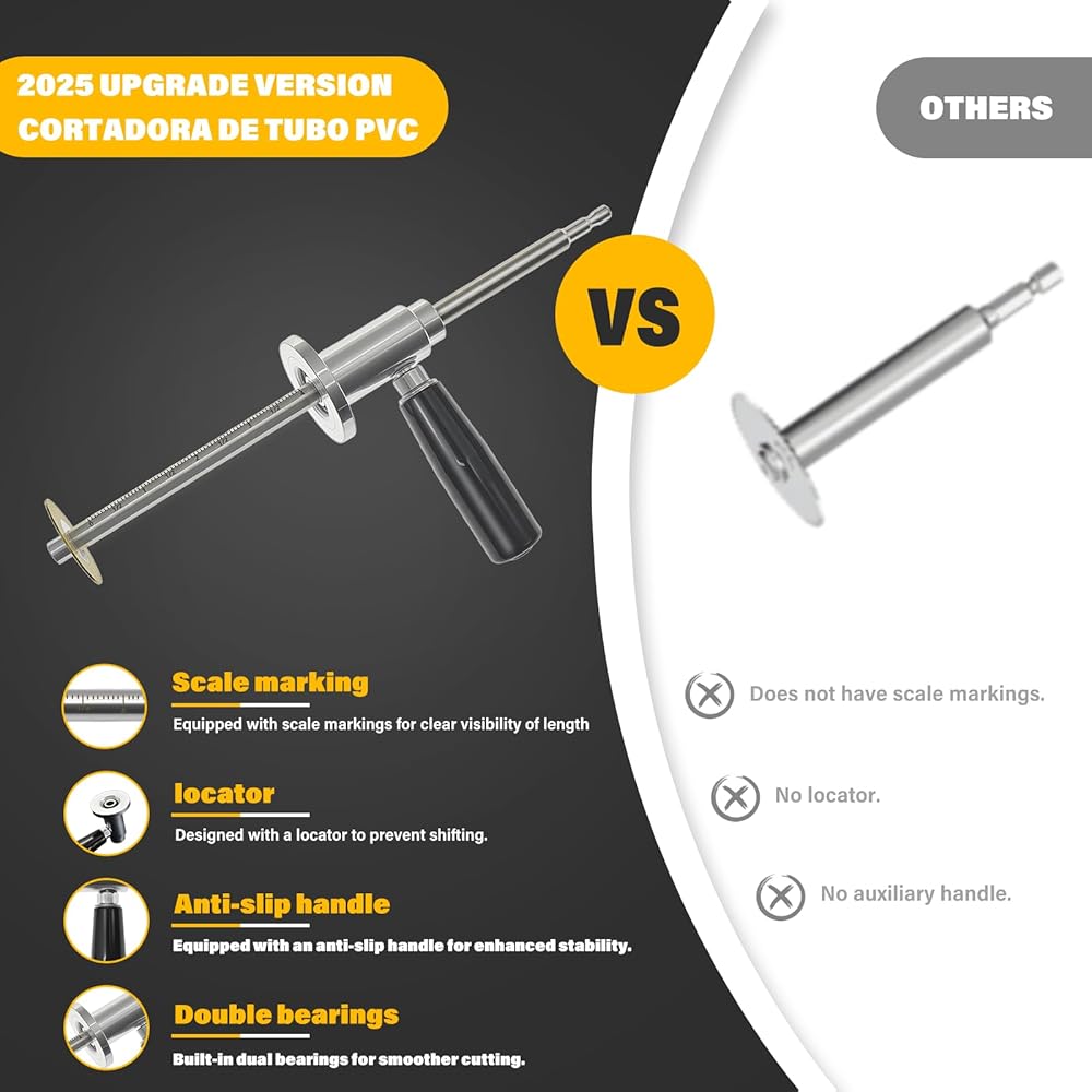 【2025 INSIDE PIPE CUTTER FOR PVC PIPE】This product addresses the issues of inaccurate depth and cutting position shifts often encountered with traditional cutting tools. It is equipped with a precision scale dial and an adjustable locking ring to set and secure the depth (0 - 7 inches), ensuring that each cut is perfectly aligned and preventing tool slippage that could damage the pipes.