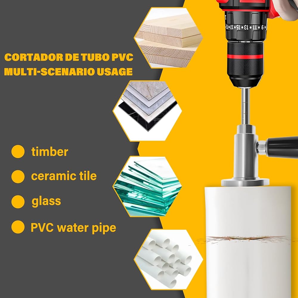 【EXPANDABLE CUTTING RANGE】This retractable internal PVC cutter accommodates PVC pipes with diameters ranging from 1.5 inches to 8 inches. It can cut not only PVC material but also harder materials such as marble, glass, and wood, thanks to its high-hardness diamond abrasive blades, making it highly versatile for residential, commercial, and automotive applications.