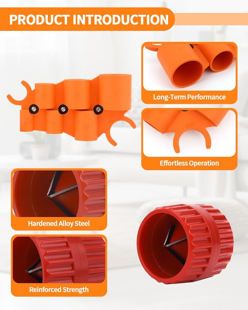 This pipe deburring tool prepares pipes for secure connections.The kit includes a precision depth gauge and an inner/outer reamer, allowing you to quickly remove sharp burrs from cut pipes. It ensures smooth, clean edges on copper, PEX, CPVC, and other tubing for a perfect, leak-free fit with push-to-connect fittings.