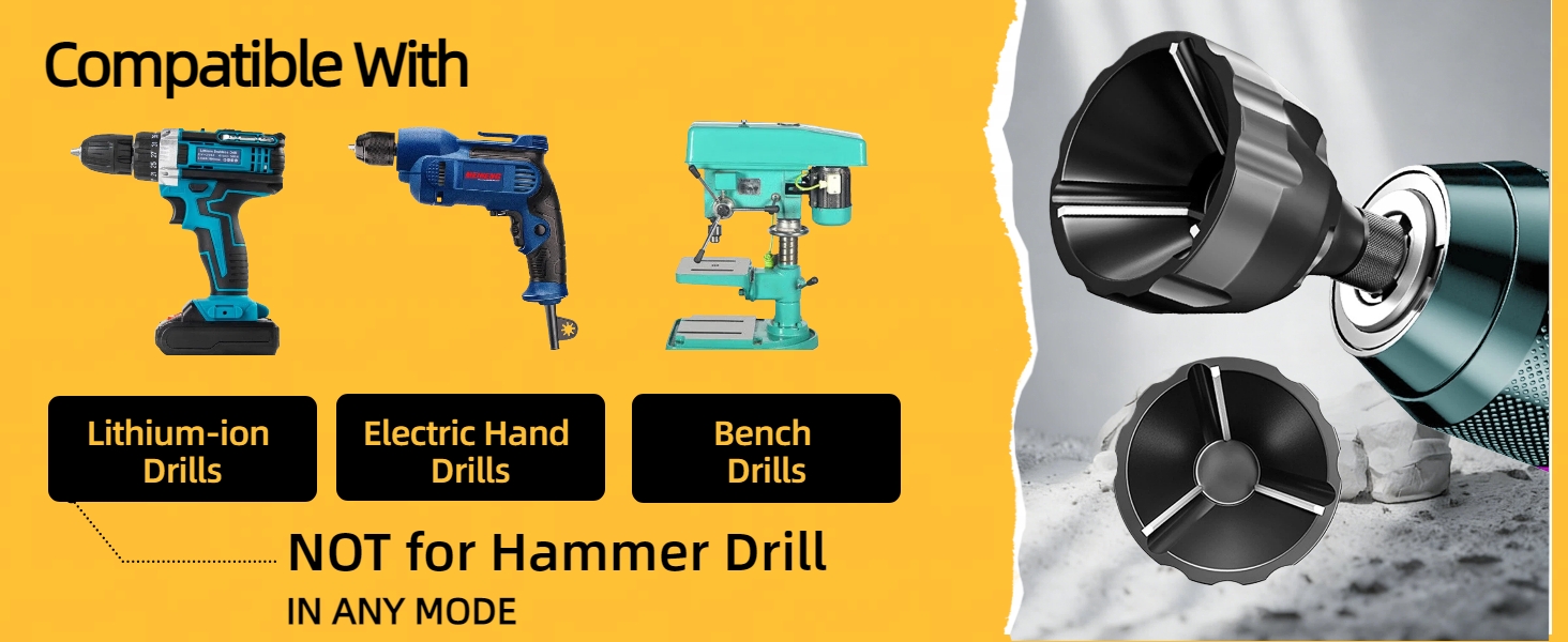 EFFORTLESS & QUICK-RELEASE Features a standard 1/4-inch hex shank for instant, secure attachment to cordless lithium-ion drills, electric hand drills and bench drills. Quick-release design enables fast tool changes to dramatically speed up workflow and boost productivity—NOT compatible with hammer drills in any operating mode.