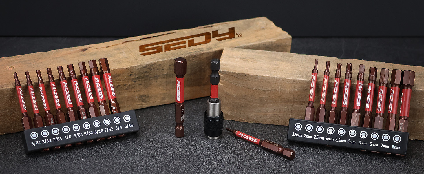 COMPLETE SET - This 21-piece set includes 10 SAE and 10 metric hex bits ranging from 1.5mm to 8mm and 5/64" to 5/16", providing a comprehensive range for various screw-driving applications in automotive, DIY, and home repairs.