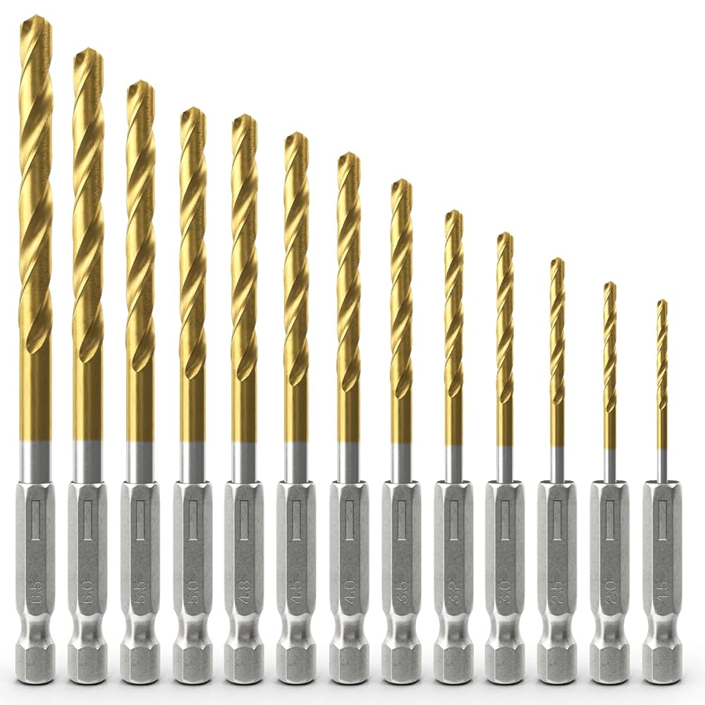 13-Piece Titanium-Coated HSS Twist Drill Bit Set – 1.5-6.5mm, 1/4" Hex Shank, High-Speed Steel for Wood, Plastic, and Metal – Precision Power Tool Accessories