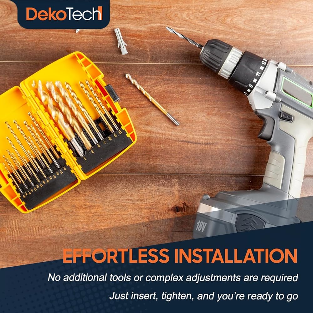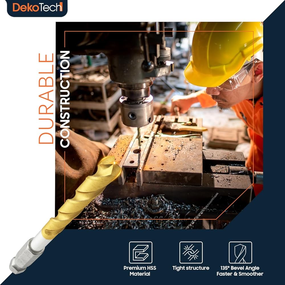 𝐒𝐮𝐩𝐞𝐫 𝐝𝐮𝐫𝐚𝐛𝐥𝐞 𝐓𝐢𝐭𝐚𝐧𝐢𝐮𝐦 𝐜𝐨𝐚𝐭𝐢𝐧𝐠: Reduces friction, limits overheating and prolongs drill bit life, helping to increase working efficiency on metal, wood and plastic.