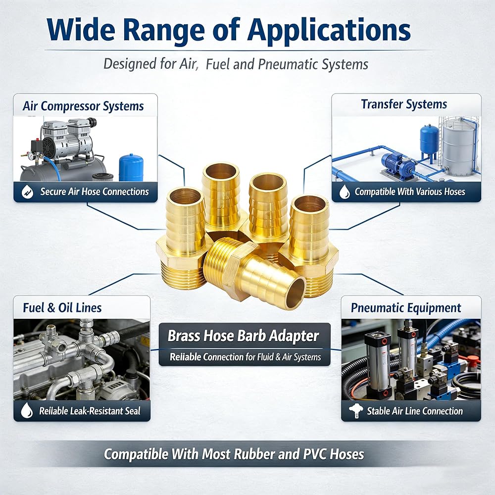 SECURE BARB GRIP & NPT SEAL Precision-machined barbs grip hose tightly, while deep NPT threads create a reliable seal when used with thread tape or sealant.