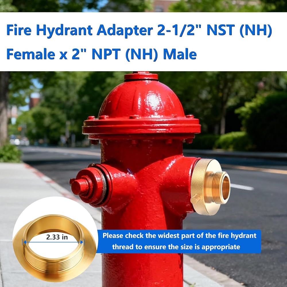 【Wide-Ranging Use】It reliably connects 2-1/2" hydrants to 2" hoses for widely used by fire departments,in municipal water supply, industrial safety, agriculture,and construction,providing a reliable adapter for various fire hoses,nozzles,and water sources.
