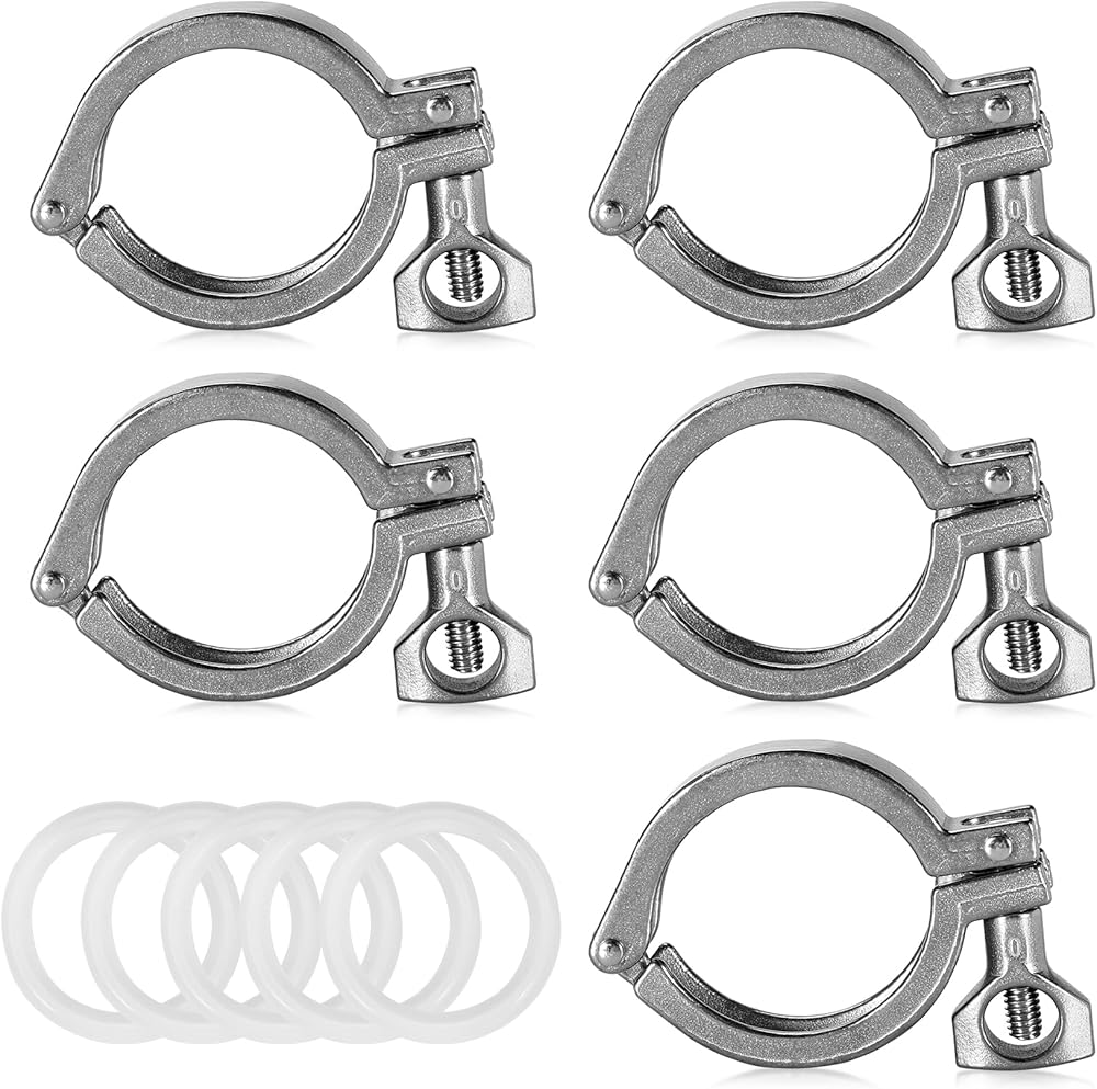 Package including:Tri Clamp: 6.8 oz(190g) * 10,Silicone Gasket: 0.14 oz32.9g) * 10.Connection Type: Compatible with 2"(50mm) TC fittings, boasting 2"(50mm) tube OD and 2.5" (64mm) ferrule OD