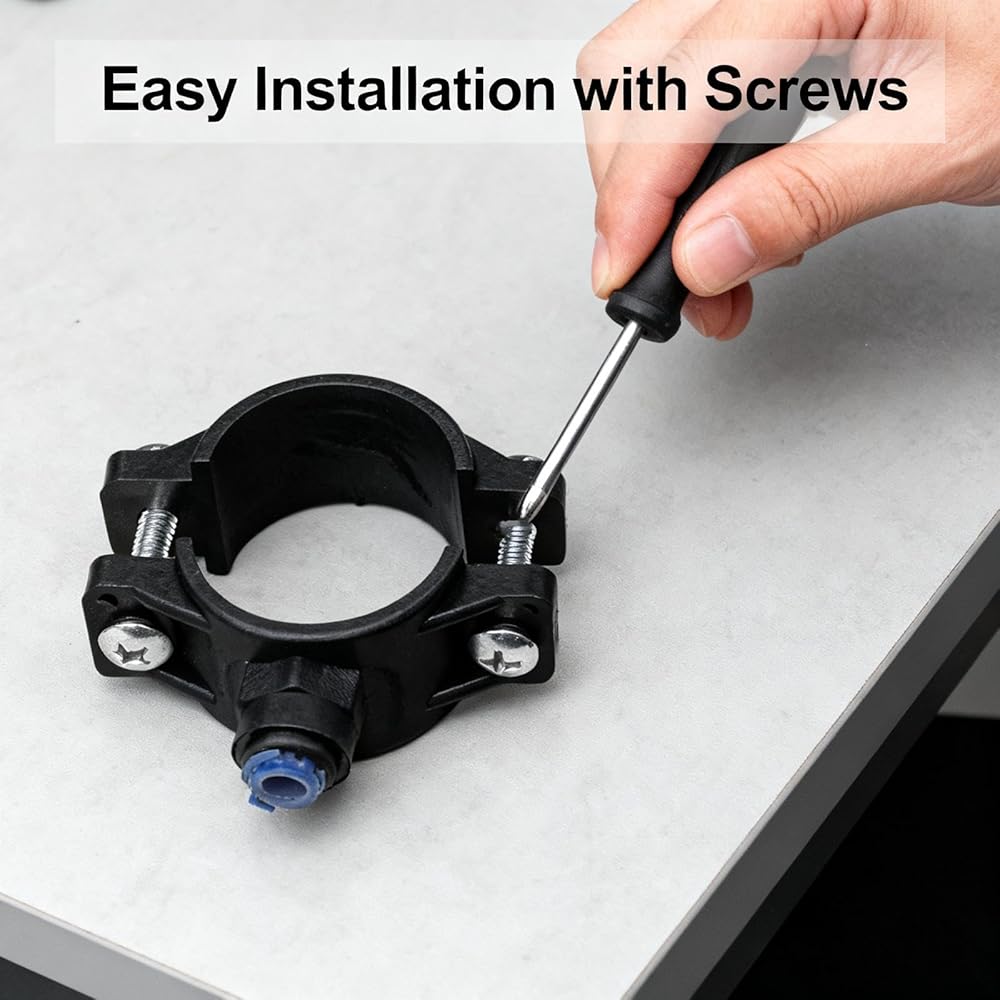 This drain saddle valve features 1/4 inch tube OD and quick connect push fittings. It's universal for RO systems, water filters, purifiers, dispensers and more, enabling easy, tool-free installation for smooth drainage.
