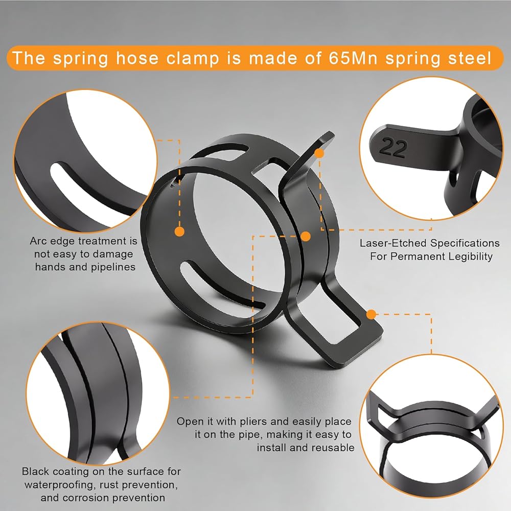 【Leak-Proof Seal with Constant Tension】Designed to maintain steady clamping force,providing a reliable seal for fuel,vacuum,coolant,and air lines.