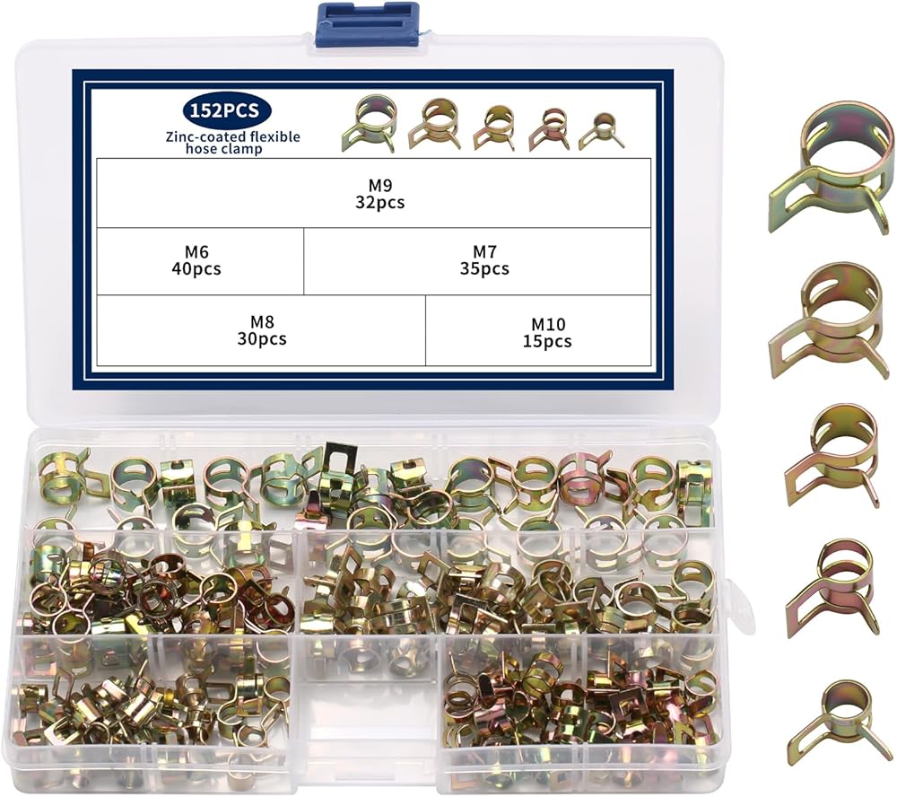 152 Pcs Fuel Line Clamp, Spring Clamps, Fuel Line Clips, Spring Hose Clampss, sSpring Band Hose Clamps Assortment Kit for Silicone Vacuum Hoses Air Tube Water Pipe Clips(6mm/7mm/8mm/9mm/10mm, Black) in Kuwait