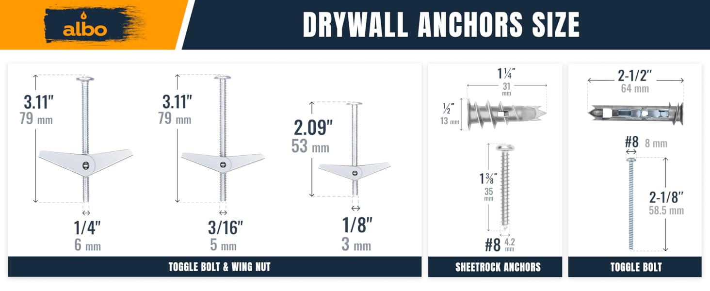 METAL DRYWALL ANCHORS – BUILT TO LAST Unlike plastic wall anchors, these metal drywall anchors don't crack or split. Whether you're using them as butterfly anchors, snap toggle anchors, or pull toggle anchors, they provide superior grip and reliability.