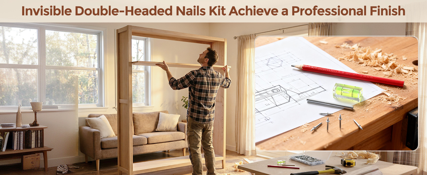 300 Pcs Double Headed Nails Double Sided Nails Kit With 3 Sleeve Tools And A Storage Case: Everything Stays Organized And Ready To Grab So Installs Are Faster Easier And Less Hassle.