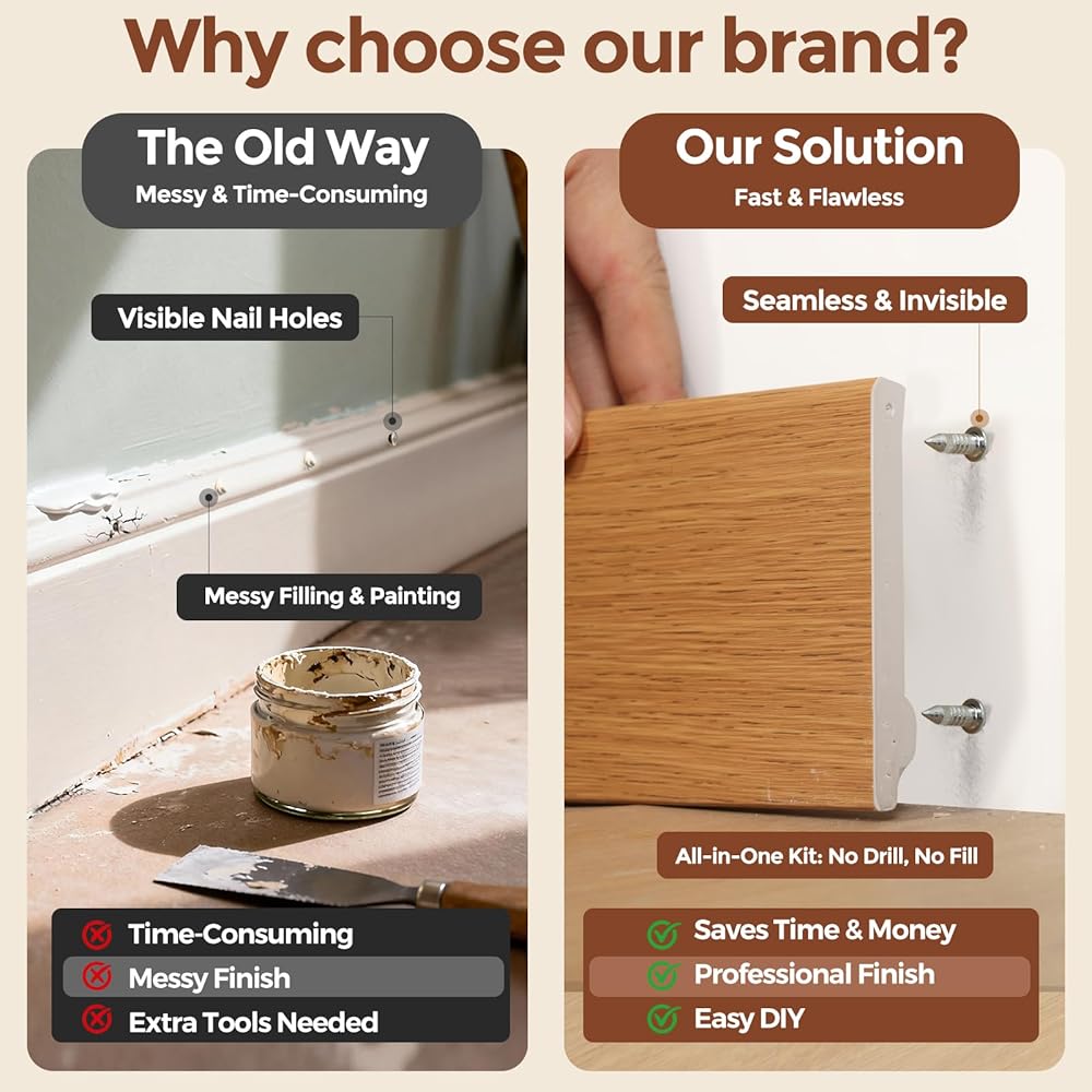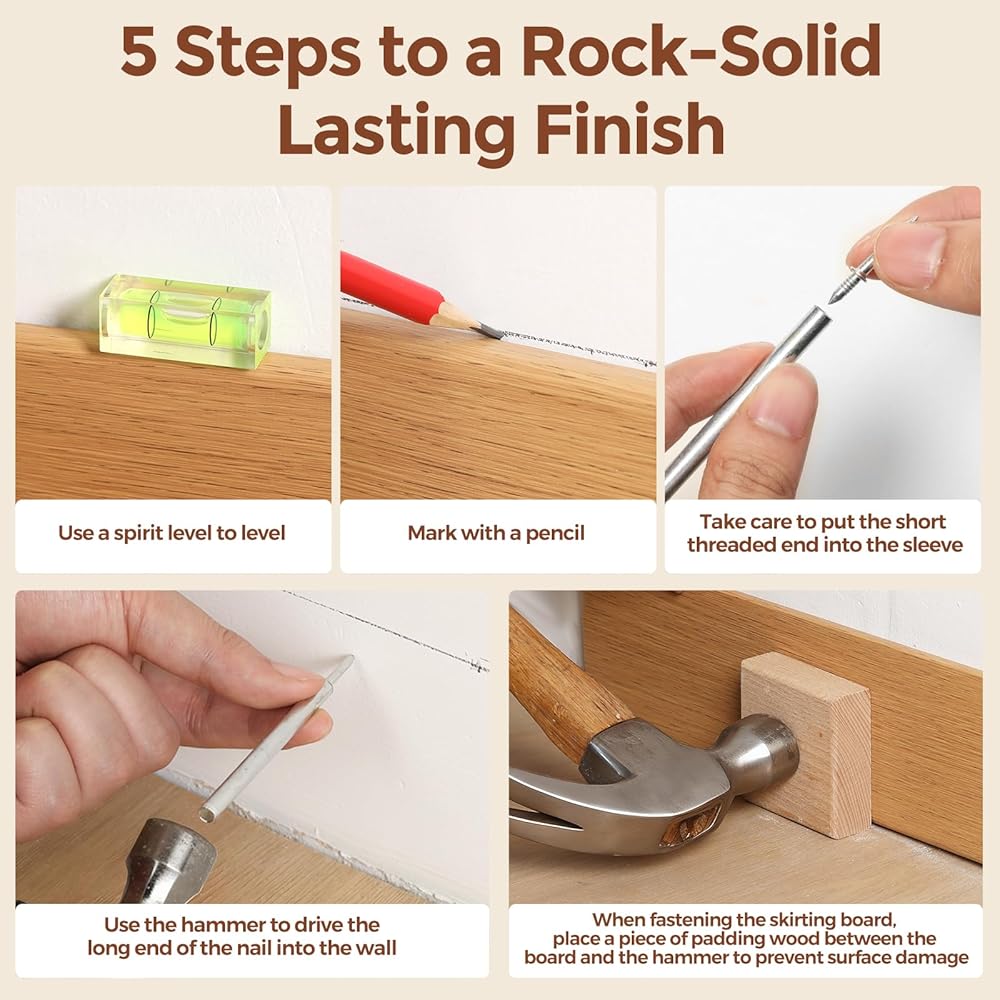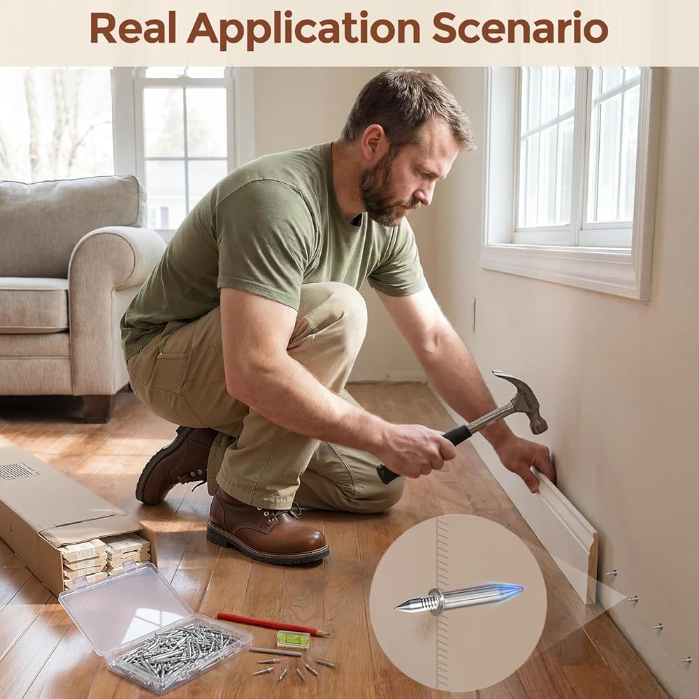 1.06 Inch Nail Length Fits Baseboard Thickness Over 0.39 Inch And Is Paintable:Choose The Right Fit With Less Rework Paint Over After Install To Blend In Smoothly Not For Load Bearing Use.