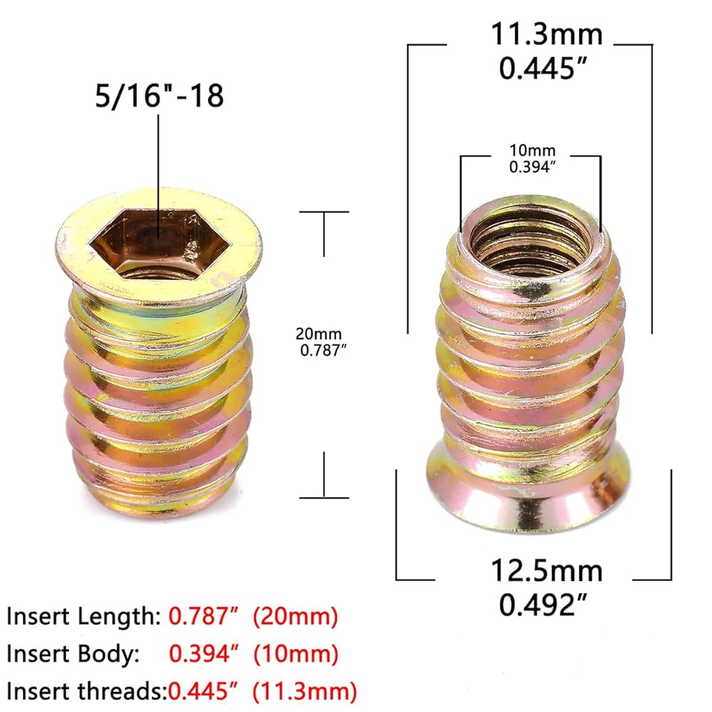 【Quantity】30 Pcs 5/16 threaded inserts for wood, sufficient for continuous woodworking applications.