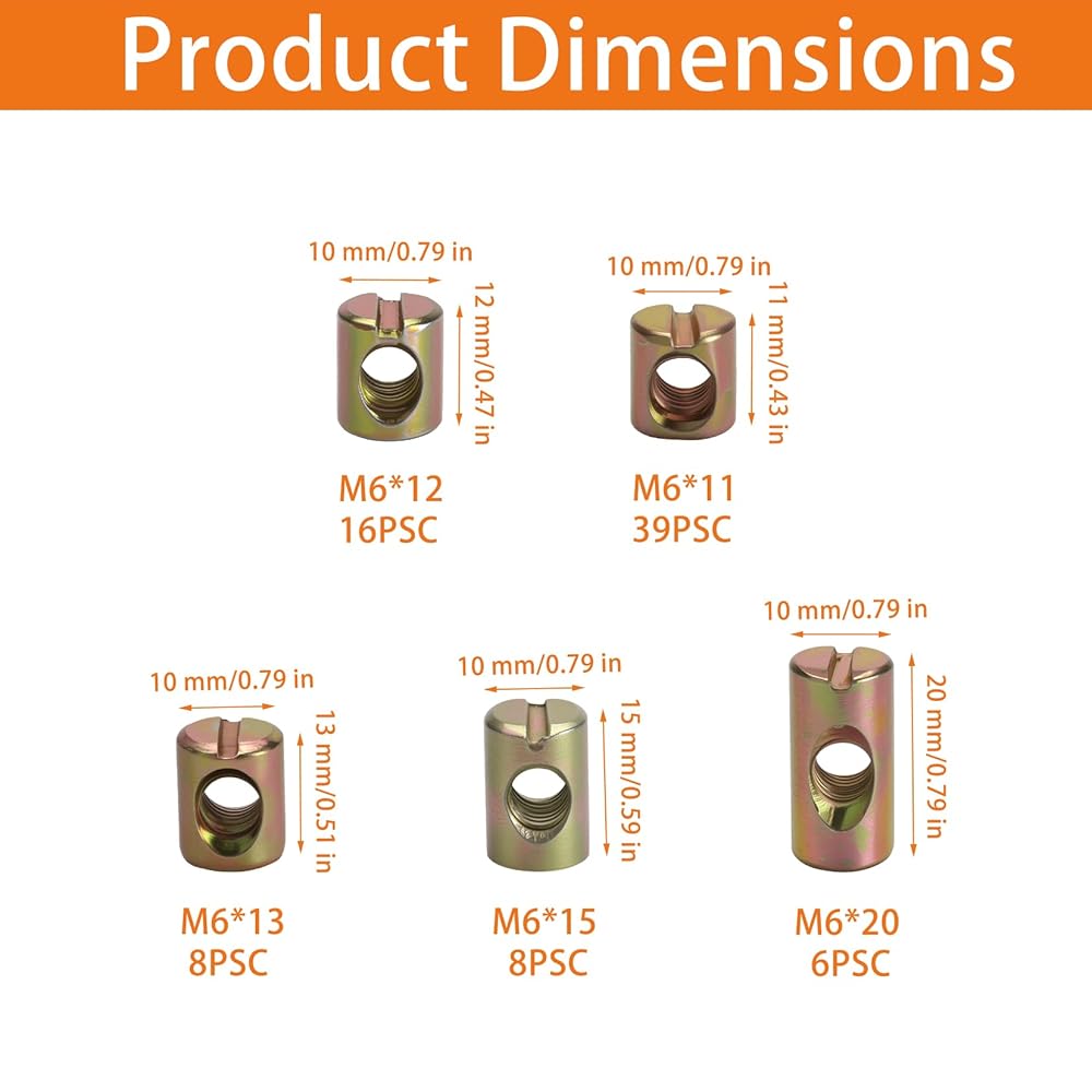 4. Available in 5 sizes with lengths of 11mm, 12mm, 13mm, 15mm, and 20mm, different lengths can be used for different types of wooden furniture.