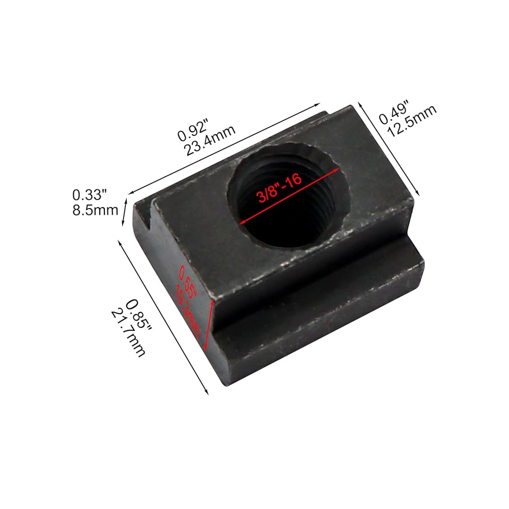 4 Pieces 3/8"-16 Threaded T-Slot Nuts, Black Oxide Finish Hardware Sliding Nut T Track Accessories Hammer Head Fastener for Woodworking, Used in Machines Tool Tables