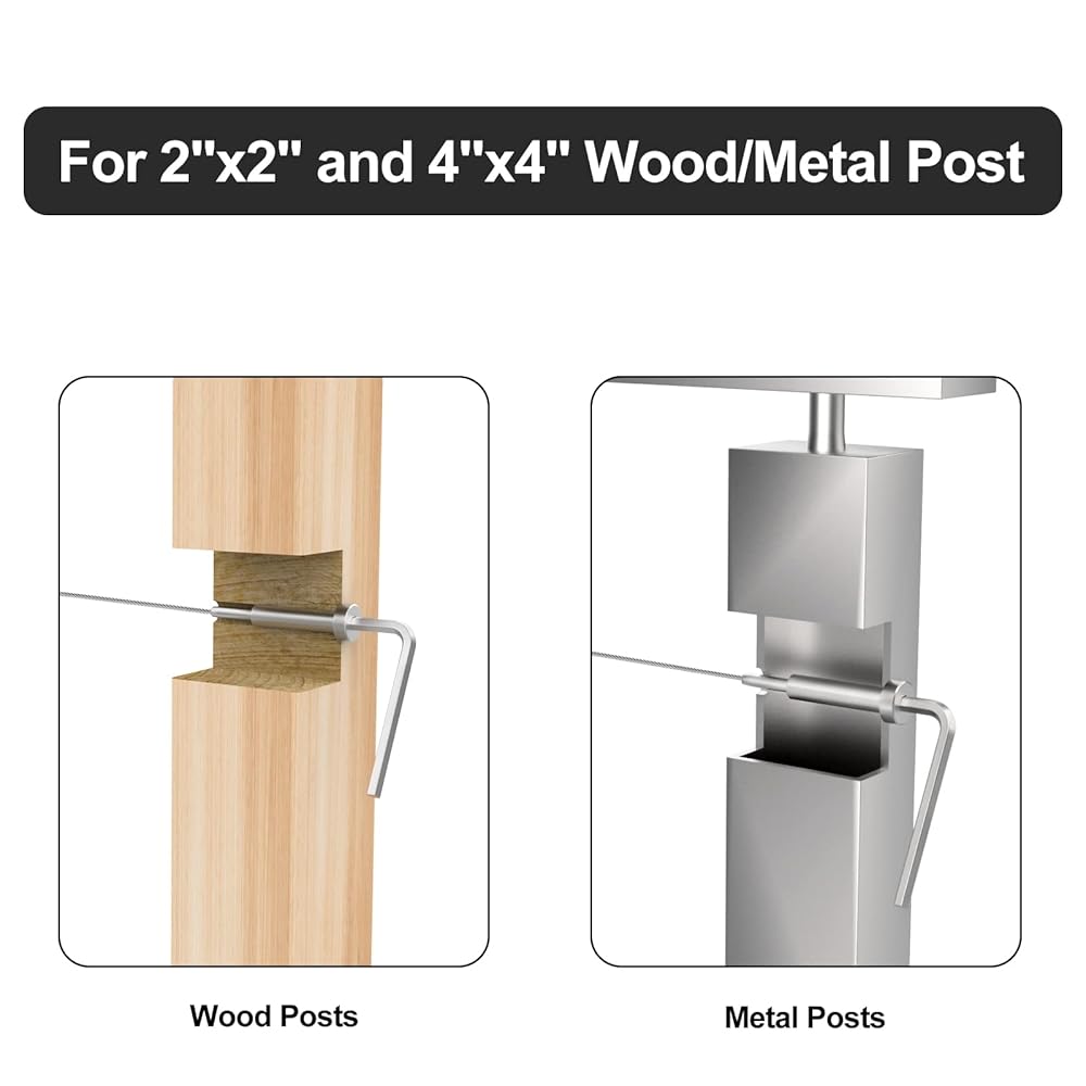 【T316 STAINLESS STELL】This cable railing hardware was made with T316 stainless steel so you don't have to worry about them rusting over time. Because of their material, you can install them both indoors and out. Use with metal or wood posts. Suitable for outdoor or indoor.