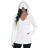 Full zip design enables flexible wear. Open for airiness in heat and zip up for warmth in cool weather. Thumbholes on sleeves keep cuffs fixed. Two outer side pockets and two inner pockets hold phones, keys and small outdoor essentials.