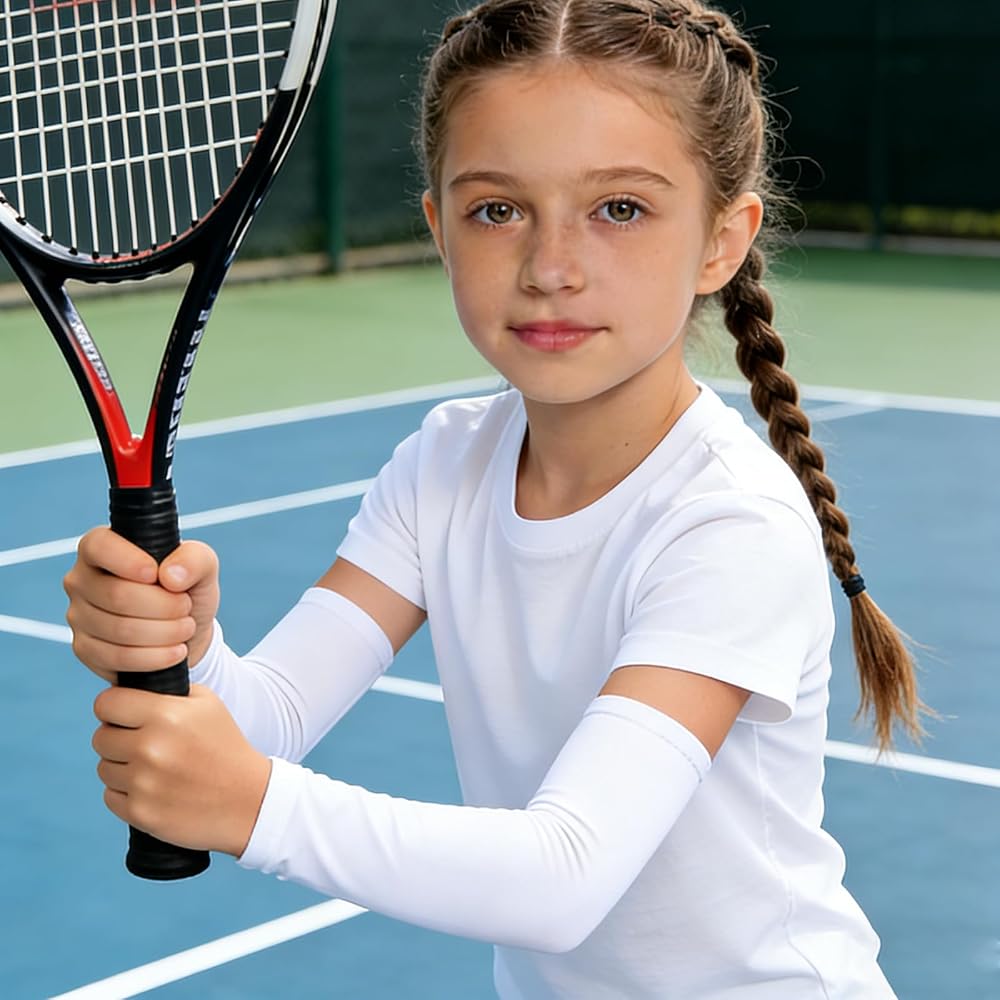 4 Pairs Kids Volleyball Arm Sleeves Youth UV Protective Cooling Sleeves for Teen Girls Boys Basketball Football Sports