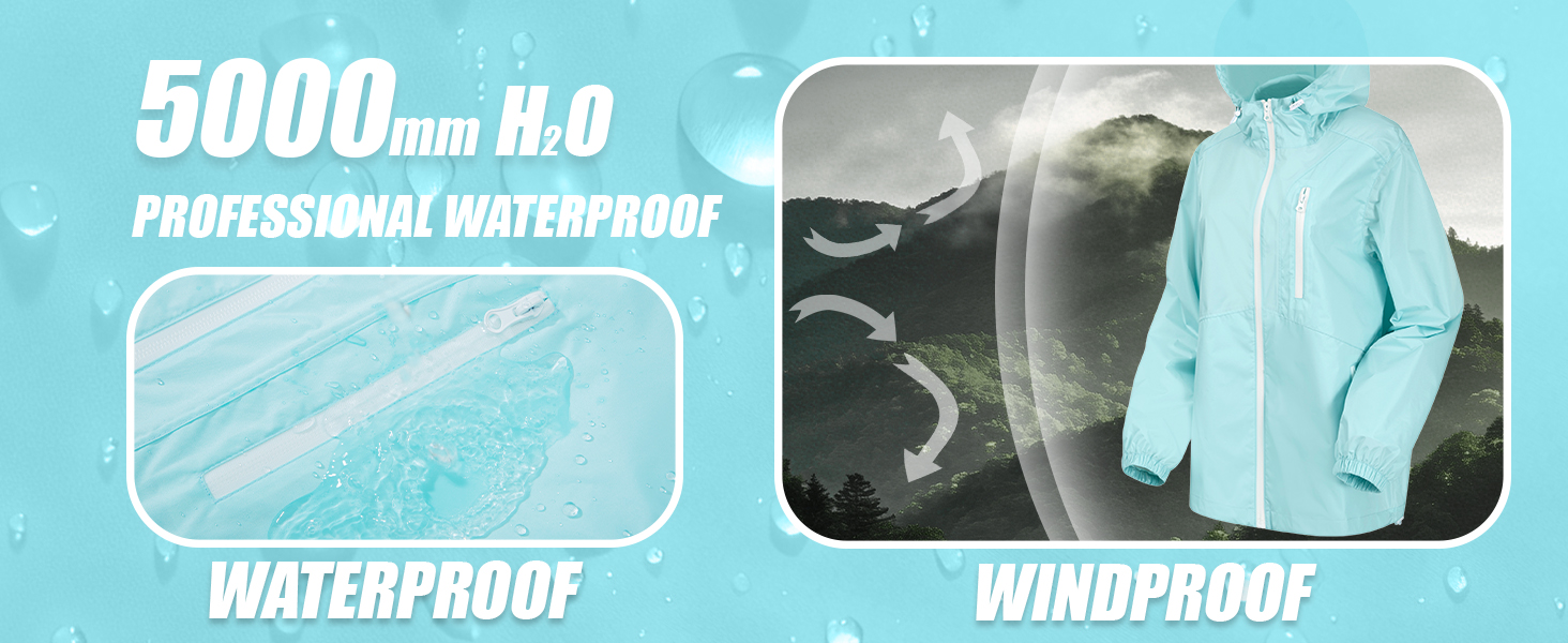 Unique Design: All zippers outside of waterproof rain jacket for women are 100% fully sealed, prevents water droplets from soaking through the inside garment's surface, keeping you completely dry; Drawstring hooded to adjust the width and height, fits head shape more better.