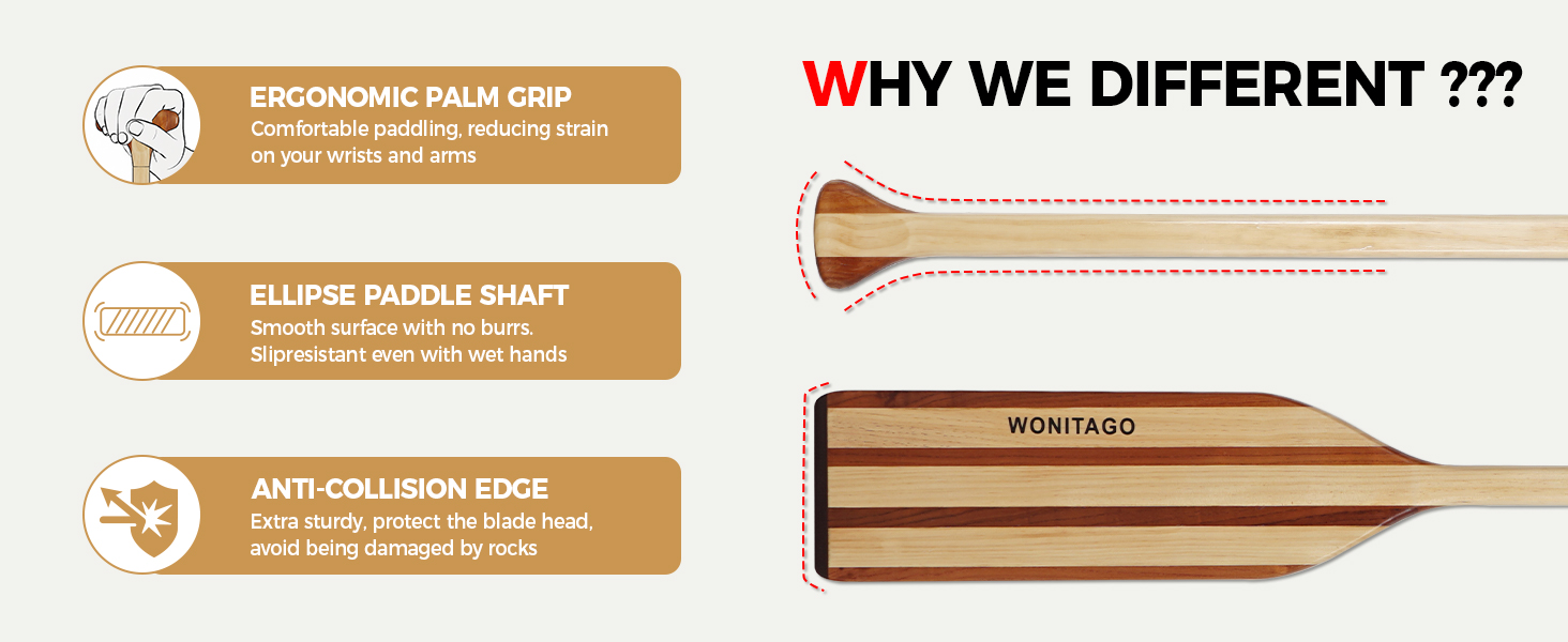 WHY CHOOSE WONITAGO --- Our canoe paddles can reduce fatigue and comfortable to use, allowing you to paddle for longer without discomfort. Try and you feel the difference with our canoe paddle