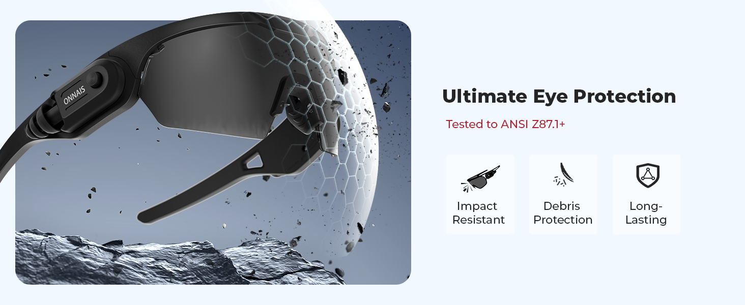 Ultimate Protection for Your Eyes: ONNAIS safety glasses are engineered to meet the ANSI Z87.1+ impact standard with lenses tested to withstand high-velocity projectiles, flying brass, metal shards, and fast-moving debris. Delivering pro-grade eye protection glasses for shooting sports, industrial jobs, and demanding outdoor activities.