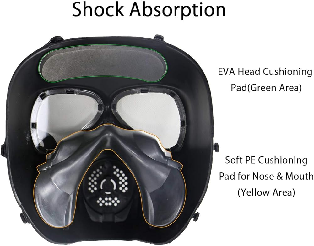 Made of engineering strong TPU material, fits nicely on face and has a very comfortable EVA head & cheek cushioning pad.
