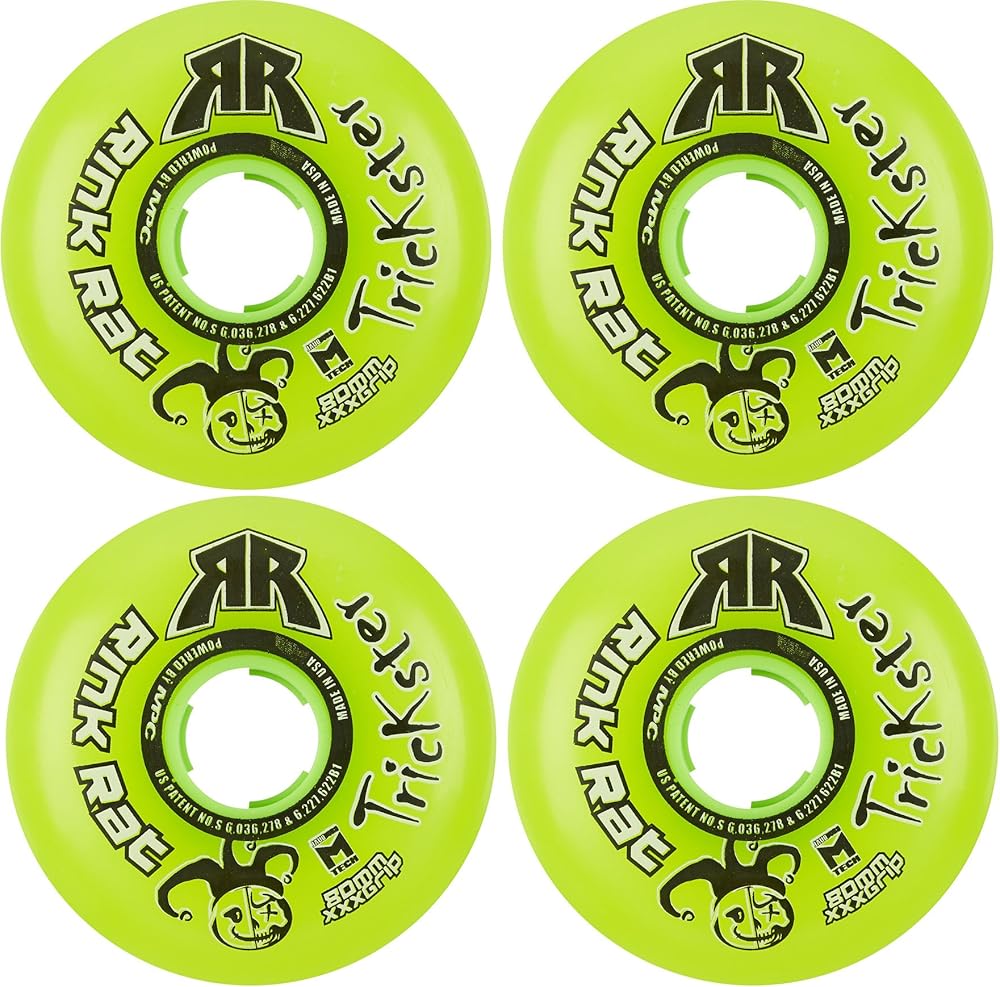 Trickster, the new game ready and game changing wheel from Rink Rat. This wheel uses a special blend of proprietary MTech and Magic Speed materials in the core and exterior providing unparalleled speed, grip and rebound on a tile surface. No break in period necessary for this one of a kind wheel that leaves the competition green with envy. The materials of iHub5 are of the highest quality and, just like the rest of the wheel, is now manufactured in Rhode Island, which makes our wheels 100% made in the East Coast of the USA. The natural bond of this urethane to the hub means that you'll never have to worry about wheels coming out of their hub or blowing up. Includes 4 68mm Wheels.