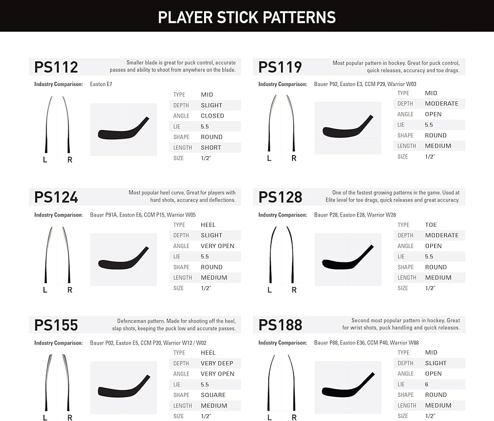 [ Blade Construction ] Matte finish, UDC Carbon Fibre skin surface with Polyurethane Foam provides a responsive puck feel for great control, quick releases, and accuracy.