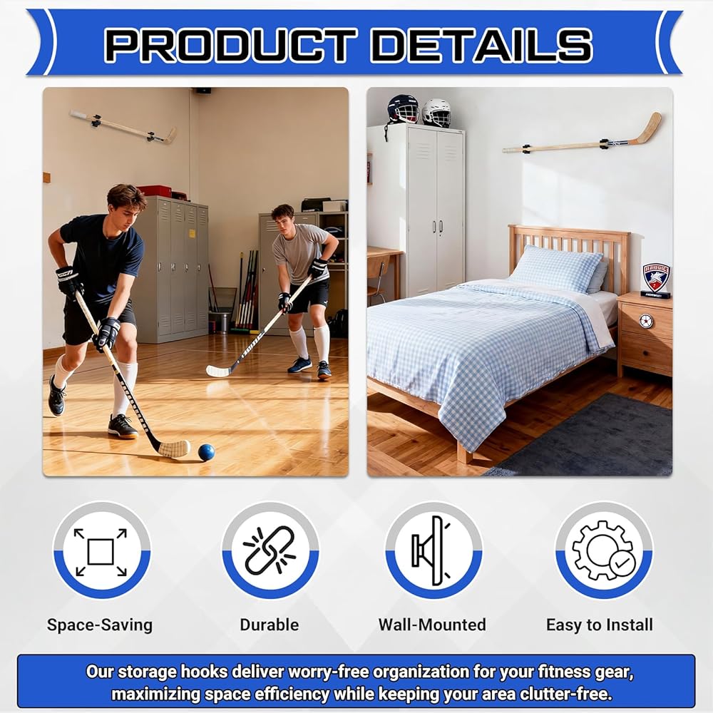 Multi Purpose Sports Solution: beyond just hockey stick storage, this holder is a universal fit for standard stick sizes, including ice hockey and badminton; Enhance the organization of your sports gear with a mount that combines practicality with aesthetics, all while protecting your equipment