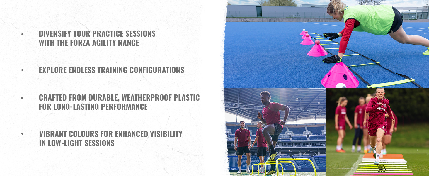 DURABLE SPORTS HURDLES - The FORZA agility hurdles are manufactured from strong shatterproof plastic for enhanced durability. Designed with player safety in mind, the track hurdles will always fall forwards when struck, avoiding collisions.